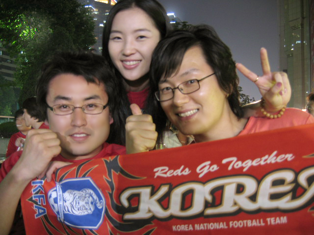 맥주한잔 하며 길거리 응원(..호프집 응원인건가??)을 하였습니다.