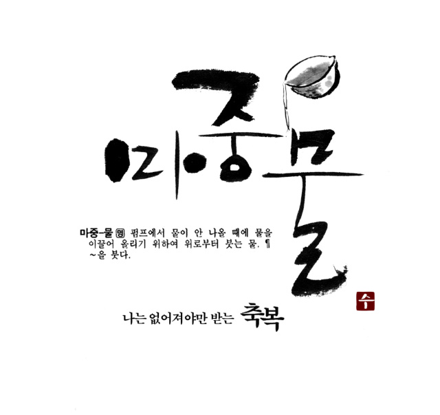 예인님 저도 캘리 부탁드려도 될까요? zenith 일반 0 5360 2009.05.11 23:19 매번 보기만 하다가 용기내서 초면에 부탁드립니다. 지역에 조그만 어머니 모임 명함에 들어갈 로고체구요 작지만 의미있는 모임이라 이쁘게 만들어 드리고 싶어서요. "마중맘"이라고 써주시면 될것 같습니다 마중물이란 순우리말에서 만드셨다고 하네요 샘플 하나 올려드리겠습니다 부탁드립니다